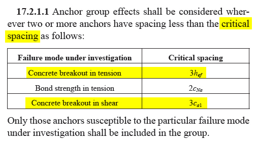 the citical spacing as specified in ACI 318-14 clause 17.2.1.1.