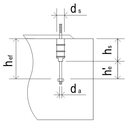 larger of 12da or ( hs + he' ) where he' =max( 6da , 6" )