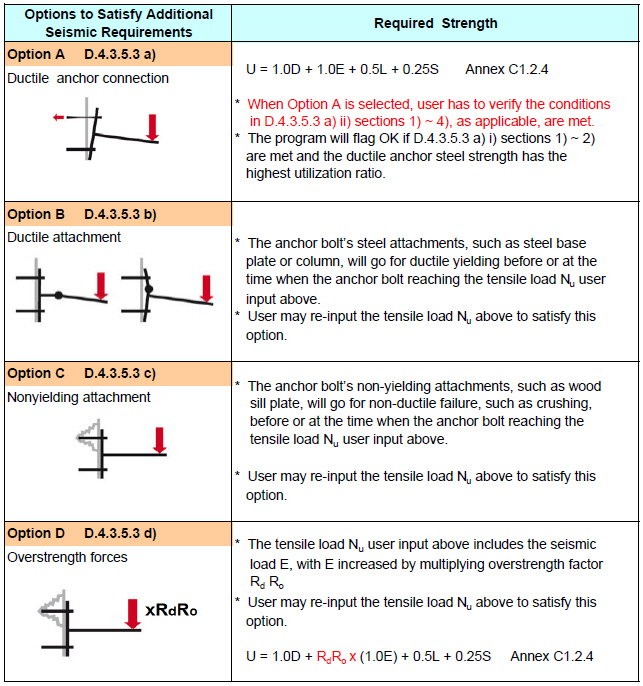 Tensile - Options to Satisfy Additional Seismic Requirements