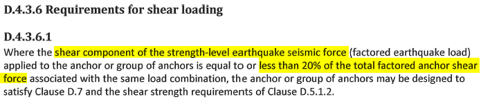 Anchor Bolt Shear Load Seismic Component E<=0.2U