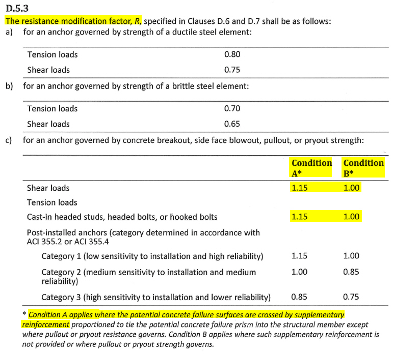 under Condition A as per CSA A23.3-14 clause D.5.3 c)