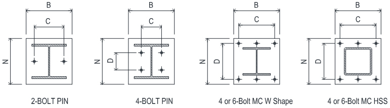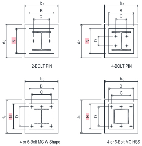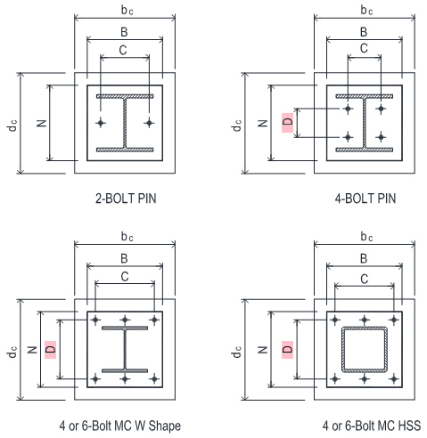 Select base plate anchor bolt pattern as shown below.