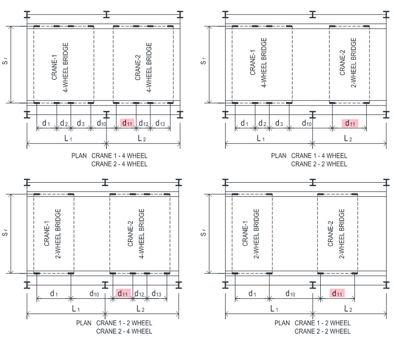 - Crane -2 bridge crane wheel spacing as shown below.