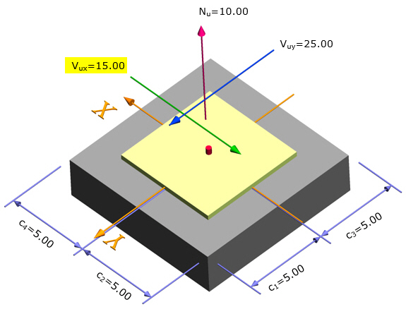 Anchor bolt force in X axis direction - factored shear V