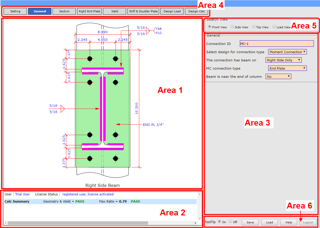 Area-1 : sketch area, sketch is shown in this area. Users can