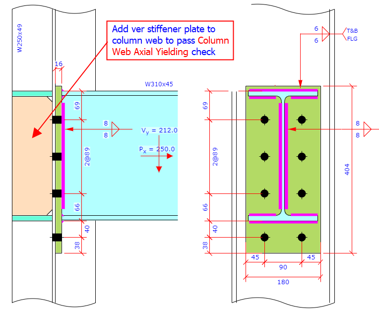 web using End Plate, Shear Tab or Gusset Plate as connector, when beam's