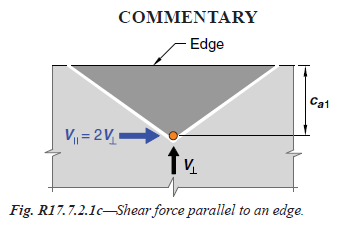 The case of shear parallel to an edge is shown in ACI 318-19 Fig. R17.7.2.1c.