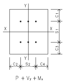 Mode 2 Shear taken evenly by back anchor bolts, strength check against 0.5 x Vu
