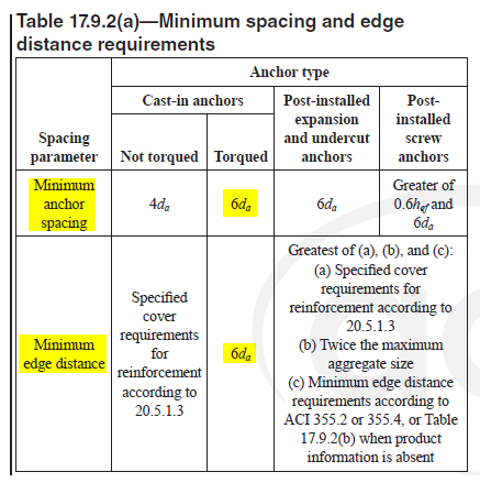 Anchor out-out spacing - in shear direction