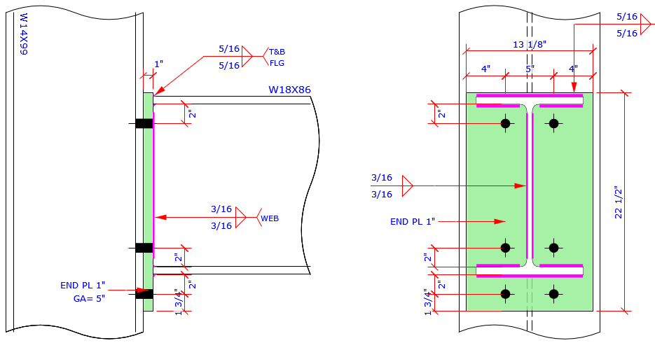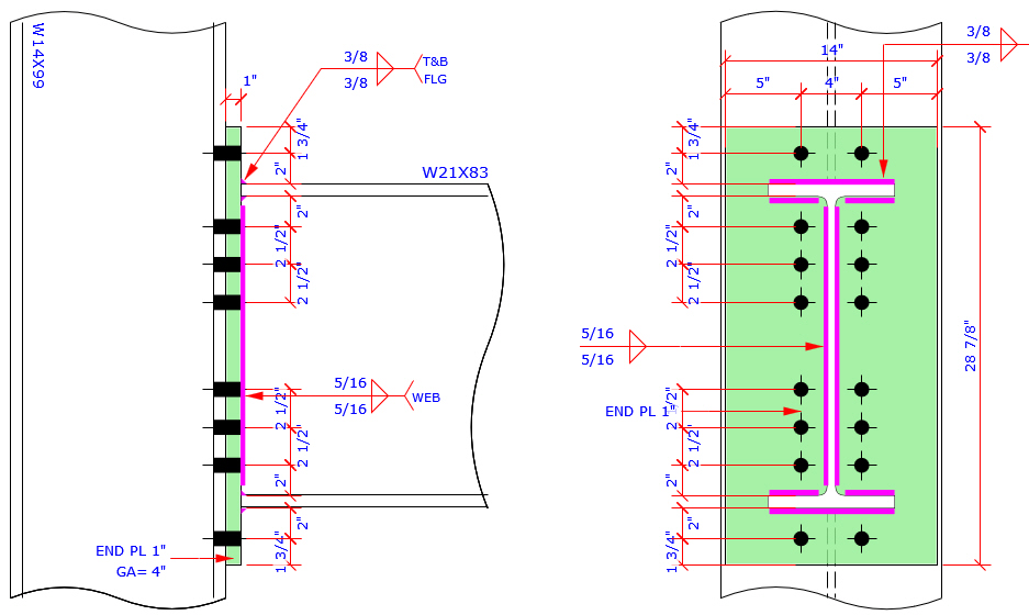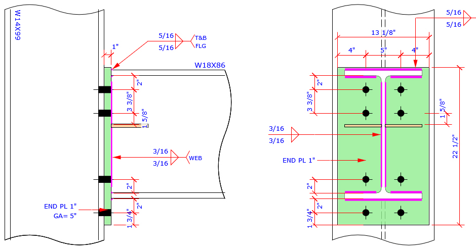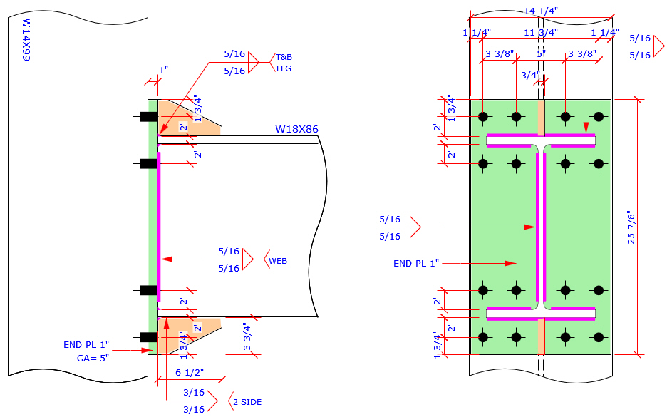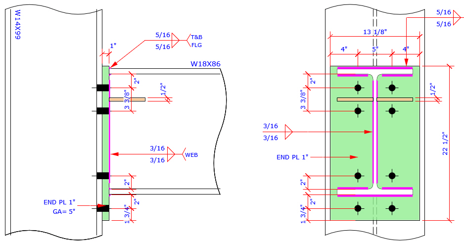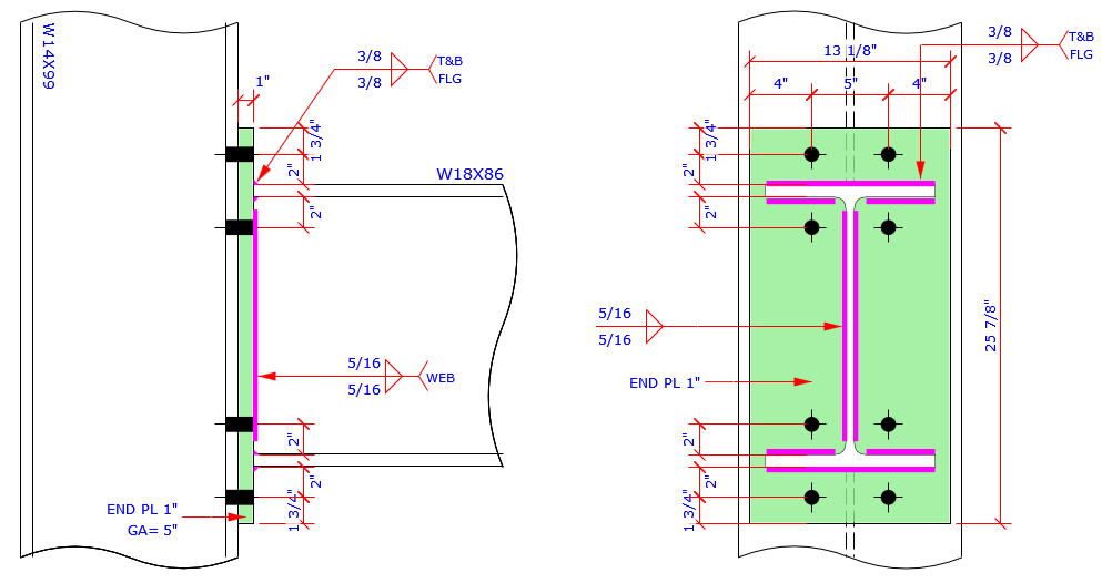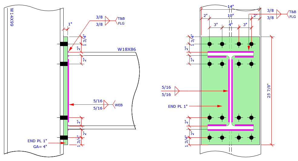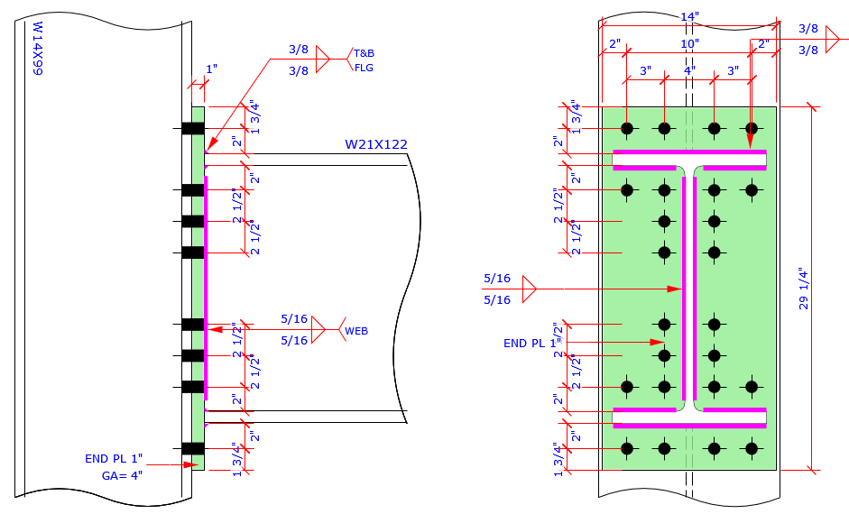 This program provides the most complete Extend End Plate and Flush End Plate bolt patterns MC connection which are more than those bolt patterns specified in AISC Design Guide 4 and 16