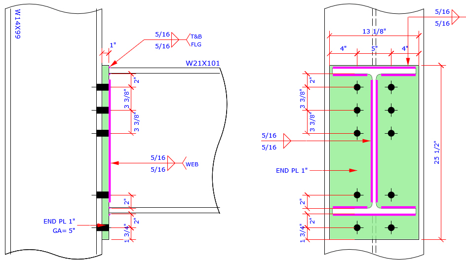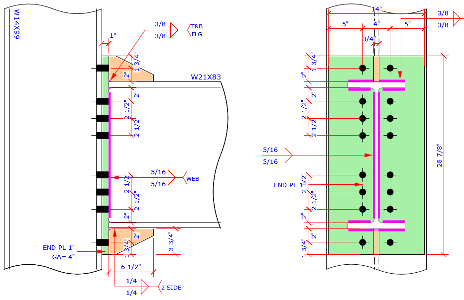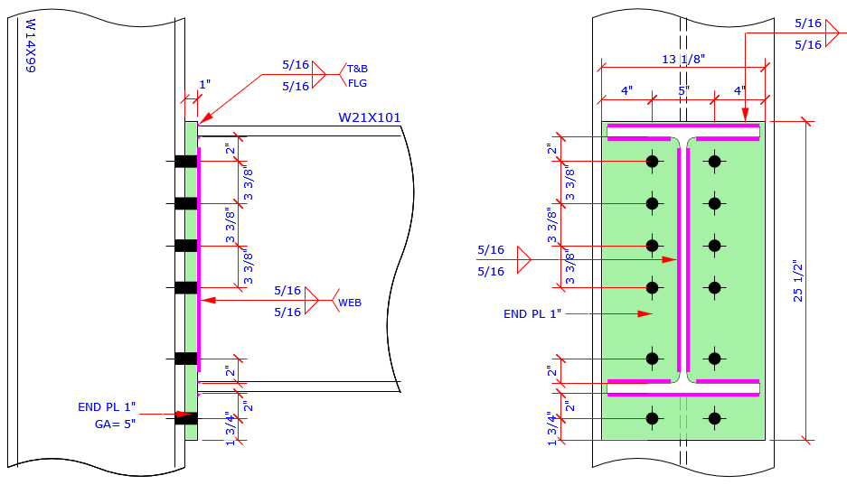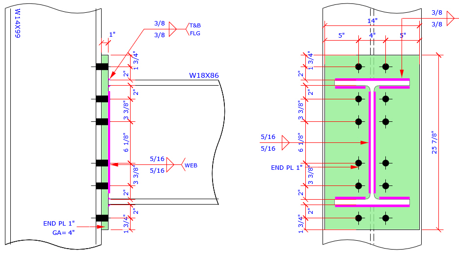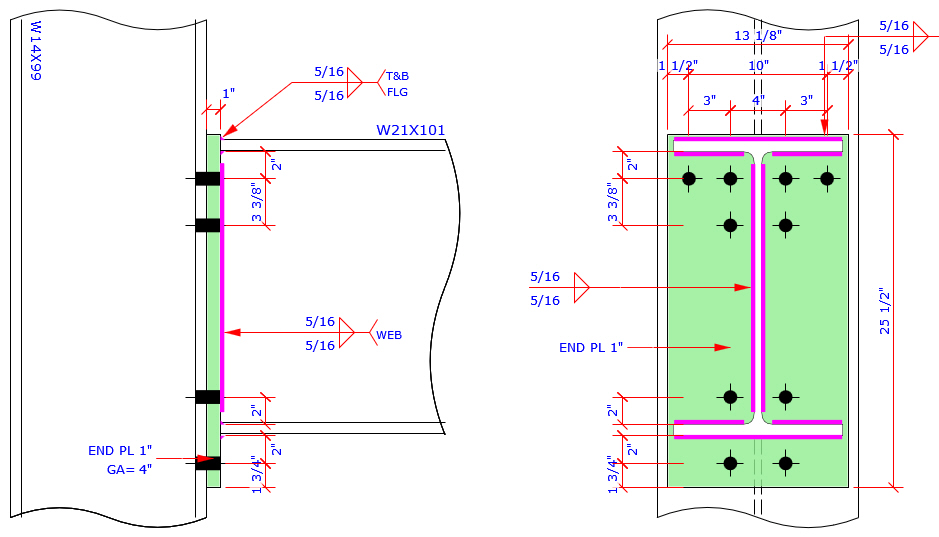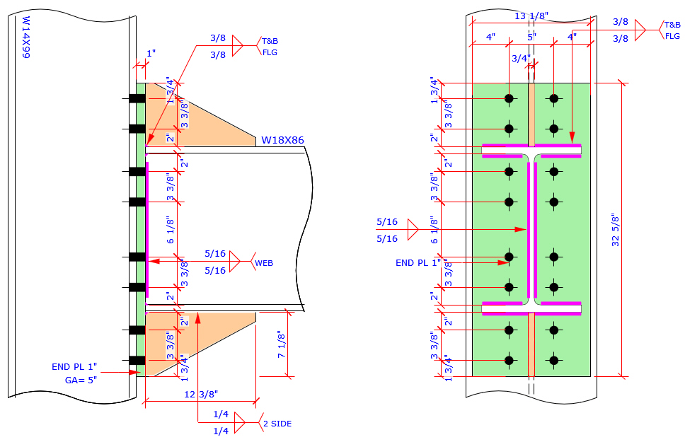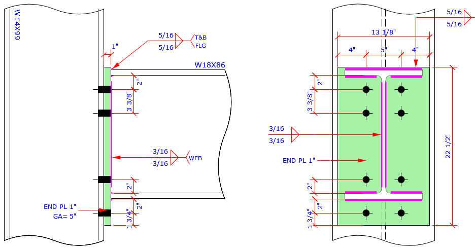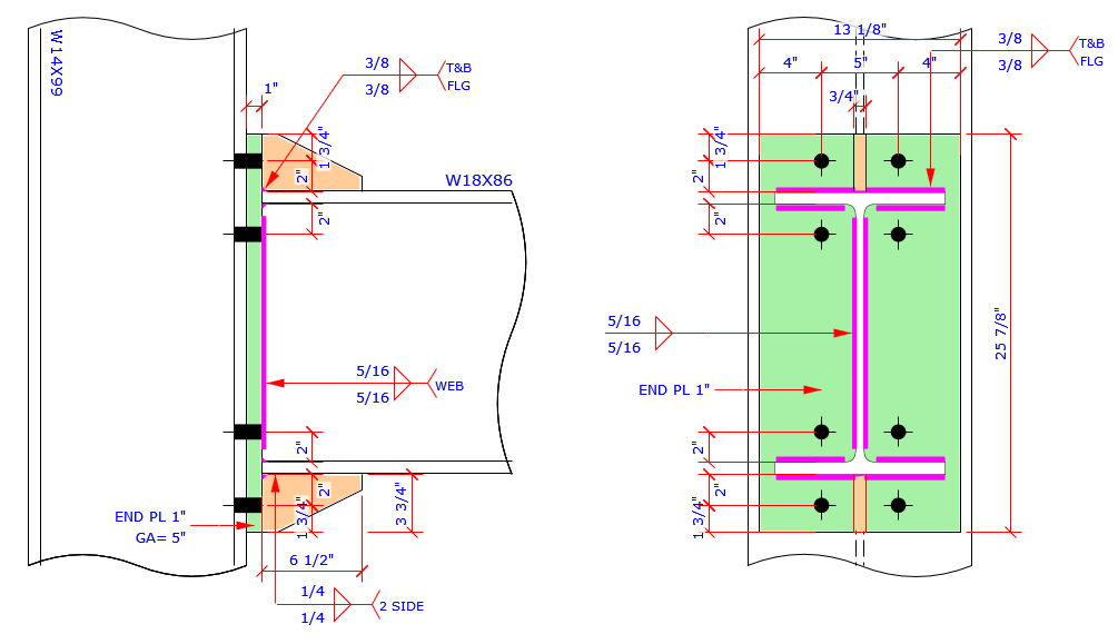 This program provides the most complete Extend End Plate and Flush End Plate bolt patterns MC connection which are more than those bolt patterns specified in AISC Design Guide 4 and 16