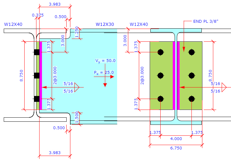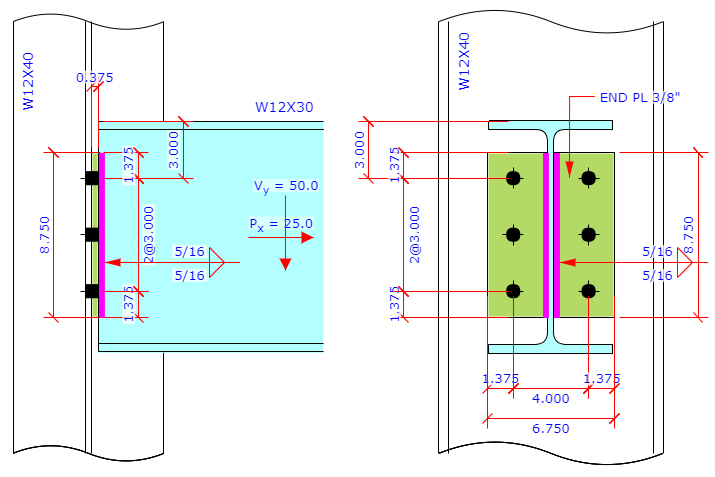 Shear Connection This program provides 3 connection types for shear connection: End Plate, Clip Angle and Shear Tab. Shear Connection -End Plate