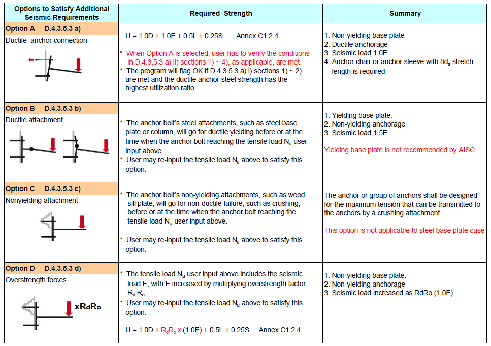 Tensile - Options to Satisfy Additional Seismic Requirements