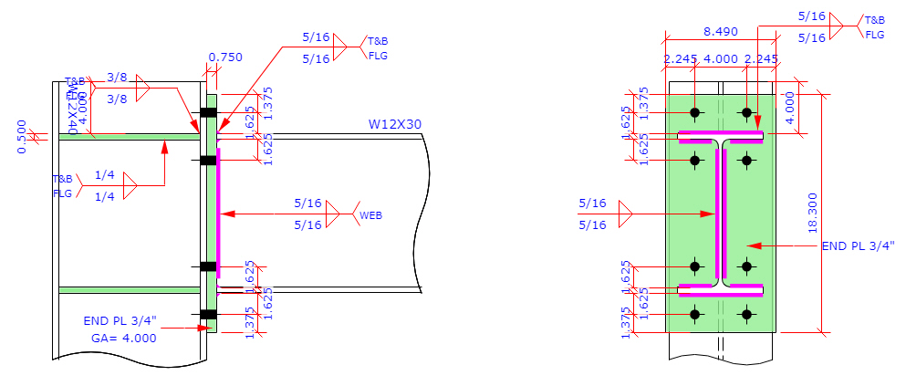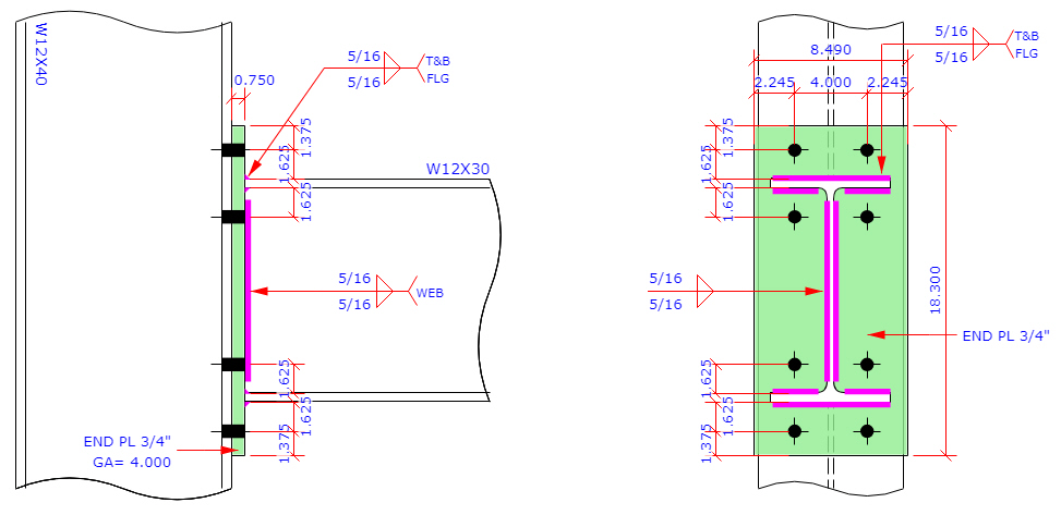 12 Bolts Extend End Plate MRE 1/3-4W/2W - Siffener Plates on Column Web
