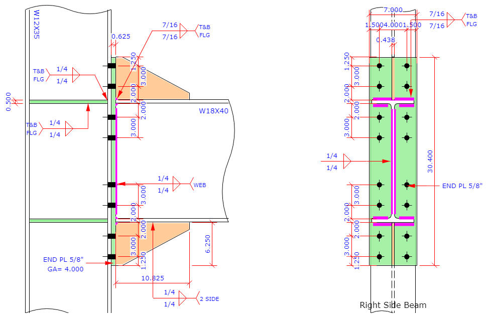 OMF 4 Bolts Extend End Plate - 4E Moment Connection