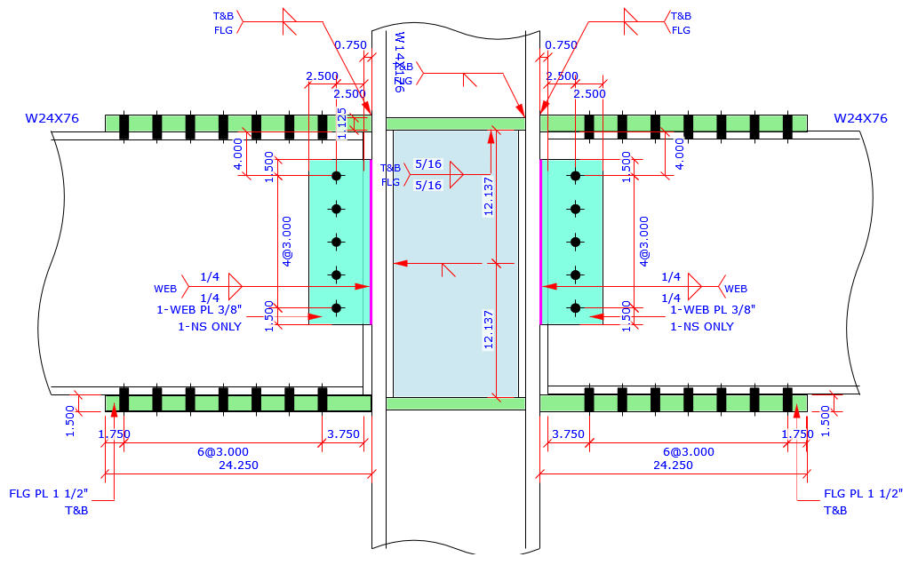 SMF BFP Bolted Flange Plate - MC on Both Sides of Column - Siffener Plates