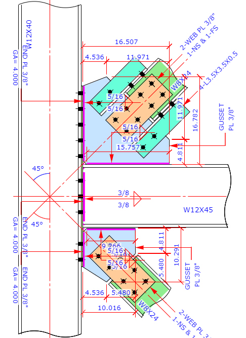 Vertical Brace Connection - W Shape Brace to Column Flange