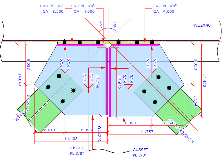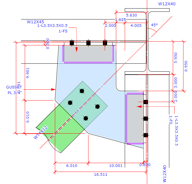 Horizontal Brace Connection - Wrap Around Gusset Plate - Clip Angle